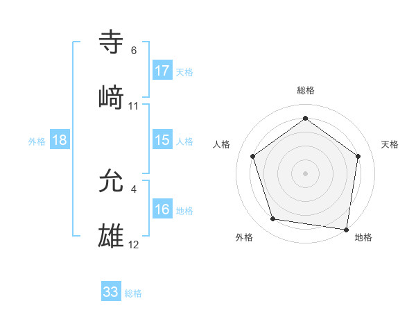 寺﨑 允雄さんの総格は33画の4点!