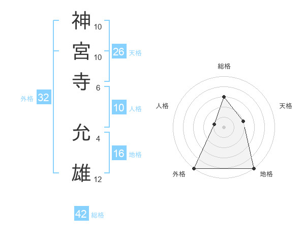 神宮寺 允雄さんを姓名の画数から五運を鑑定