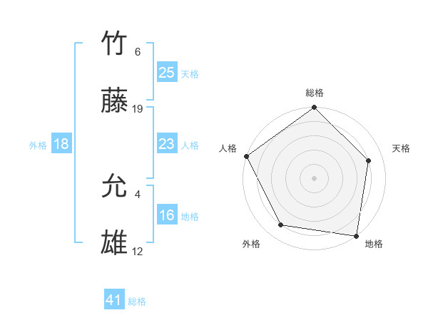 竹藤 允雄さんの総格は41画の5点!