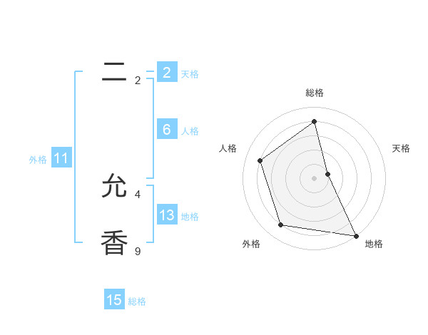 二 允香さんの総格は15画の4点!