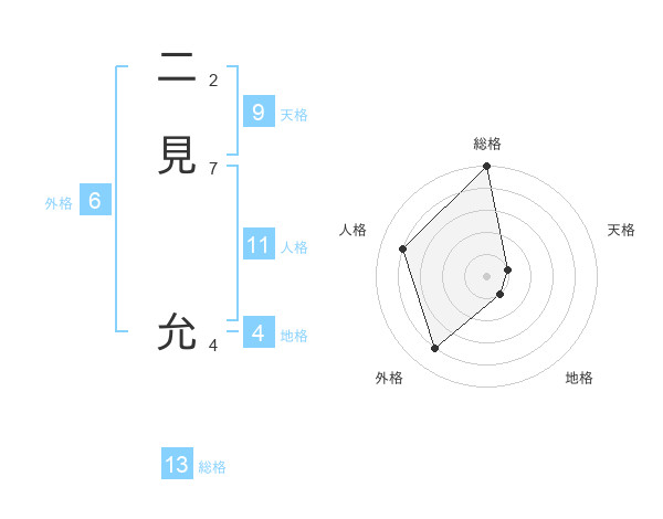 二見 允さんの総格は13画の5点!