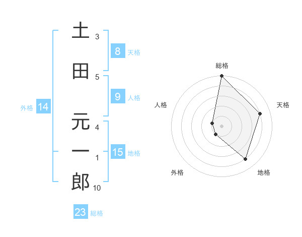 土田 元一郎さんの総格は23画の5点!