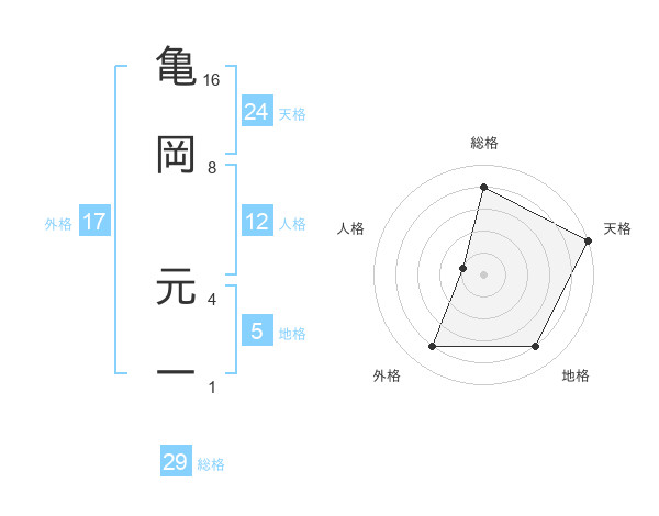 亀岡 元一さんを姓名の画数から五運を鑑定