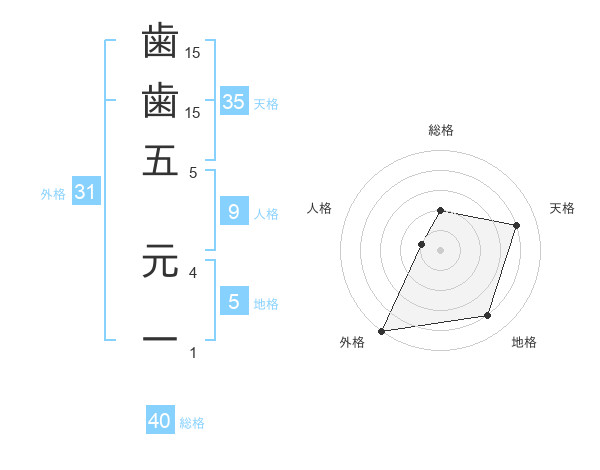 歯歯五 元一さんを姓名の画数から五運を鑑定