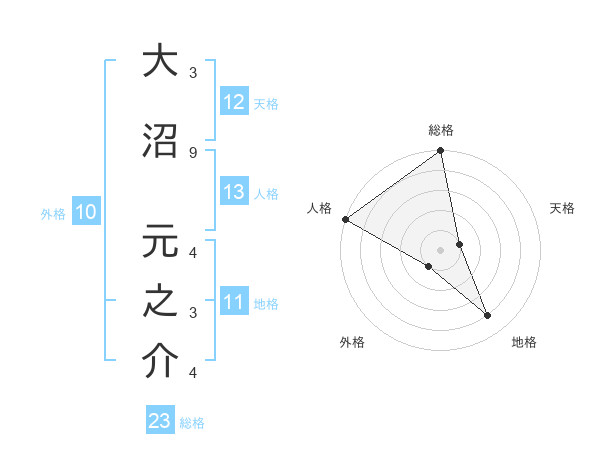 大沼 元之介さんを姓名の画数から五運を鑑定