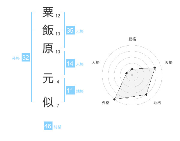 粟飯原 元似さんの天格は35画の4点!
