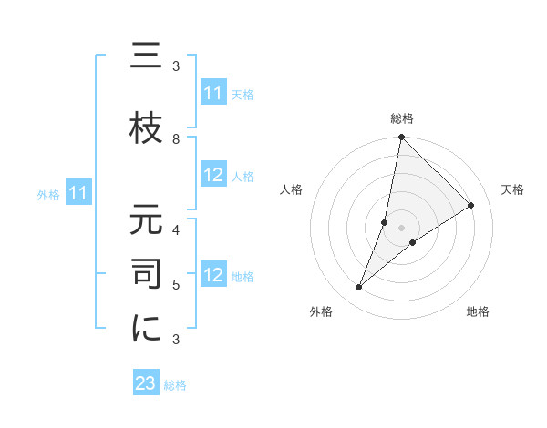 三枝 元司にさんを姓名の画数から五運を鑑定