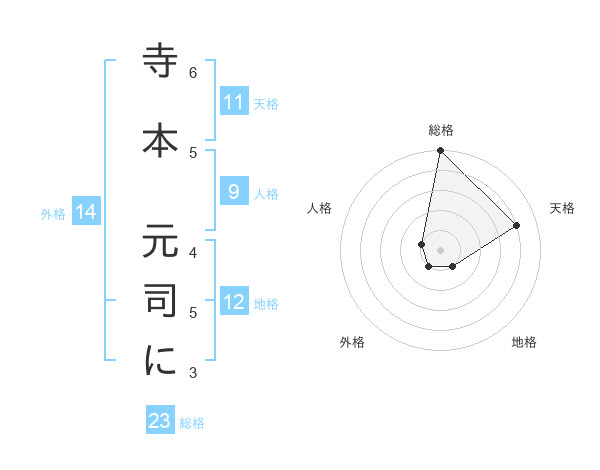 寺本 元司にさんを姓名の画数から五運を鑑定