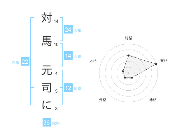 対馬 元司にさんの天格は24画の5点!