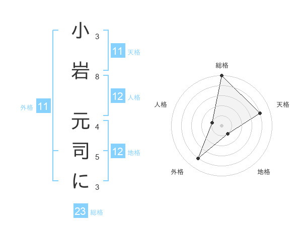 小岩 元司にさんの総格は23画の5点!