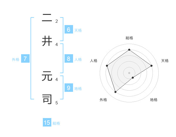 二井 元司さんの総格は15画の4点!
