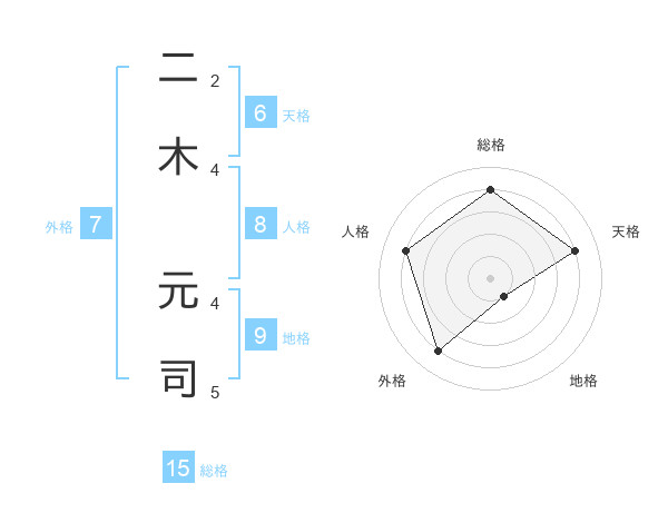 二木 元司さんの総格は15画の4点!