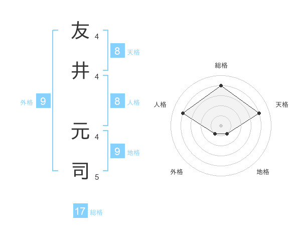 友井 元司さんの天格は8画の4点!