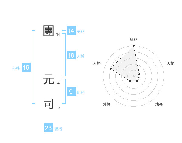 團 元司さんの総格は23画の5点!