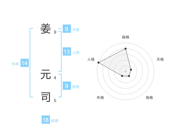姜 元司さんの総格は18画の4点!