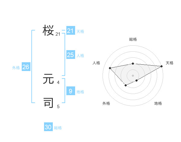 桜 元司さんの総格は30画の2点!