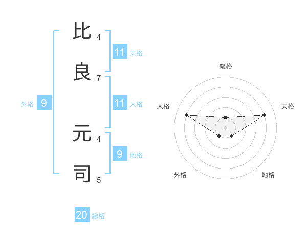 比良 元司さんの総格は20画の1点!
