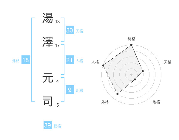 湯澤 元司さんを姓名の画数から五運を鑑定