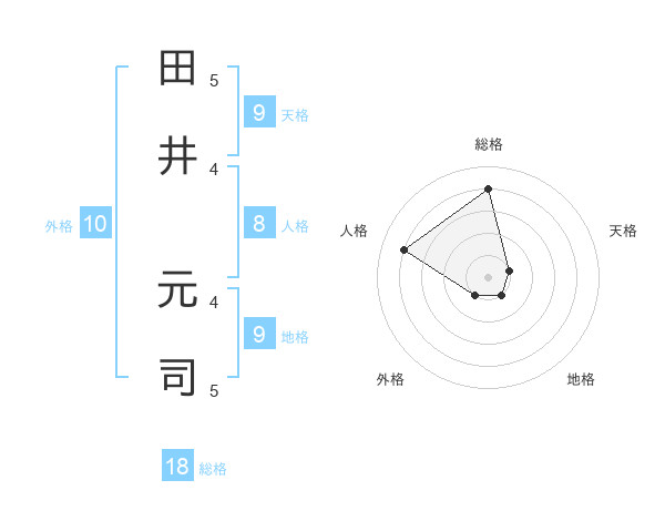 田井 元司さんの総格は18画の4点!