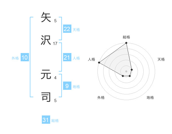 矢沢 元司さんを姓名の画数から五運を鑑定