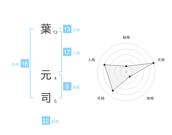 葉 元司さんの天格は13画の5点!