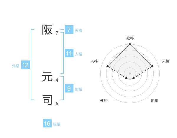阪 元司さんの総格は16画の5点!