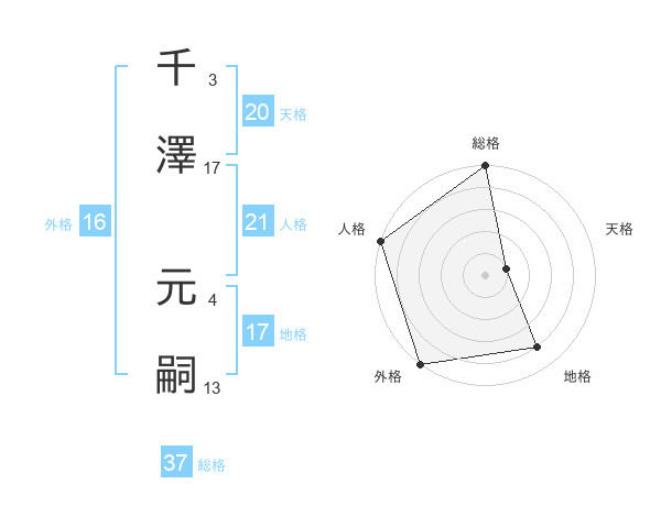 千澤 元嗣さんを姓名の画数から五運を鑑定