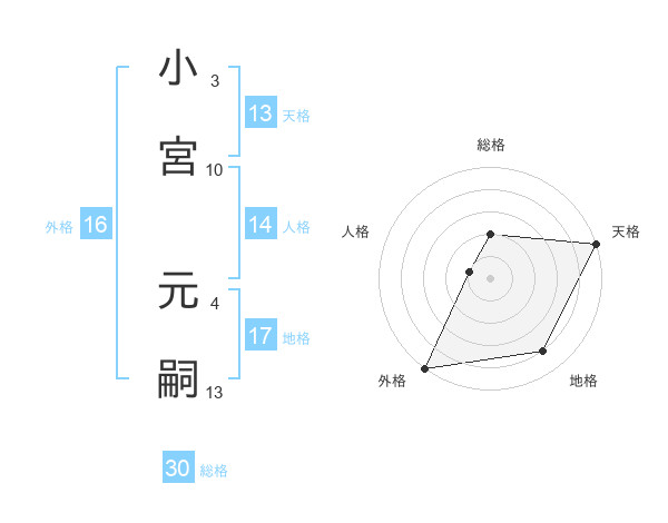 小宮 元嗣さんを姓名の画数から五運を鑑定