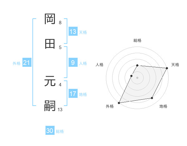 岡田 元嗣さんの天格は13画の5点!