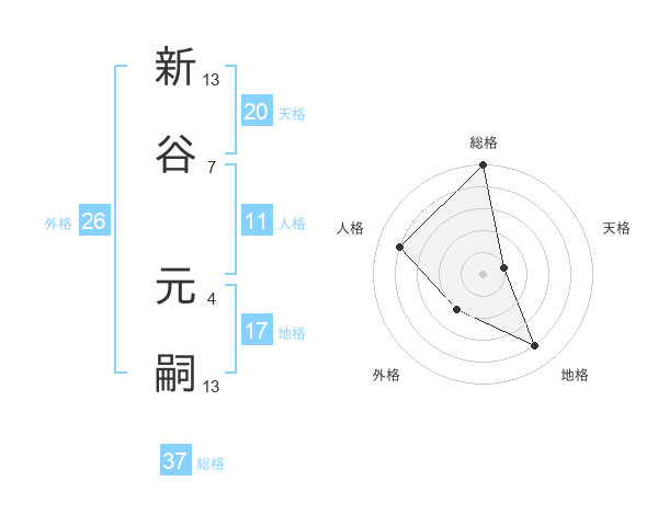 新谷 元嗣さんを姓名の画数から五運を鑑定