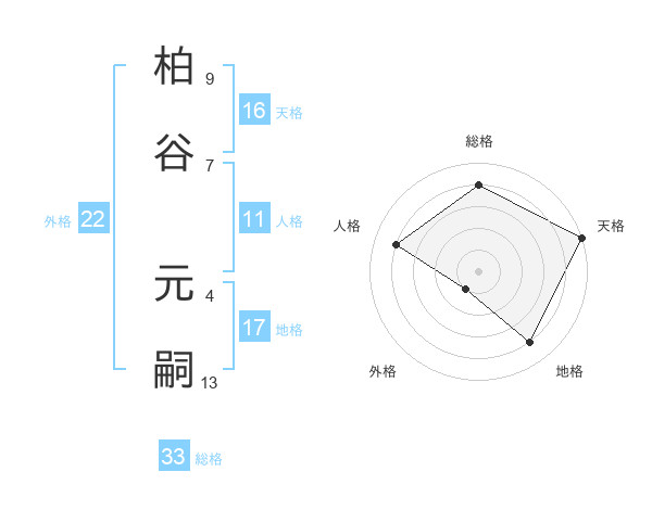 柏谷 元嗣さんを姓名の画数から五運を鑑定