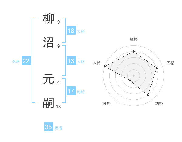 柳沼 元嗣さんの外格は22画の1点!