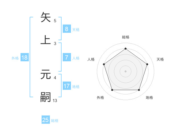 矢上 元嗣さんの天格は8画の4点!