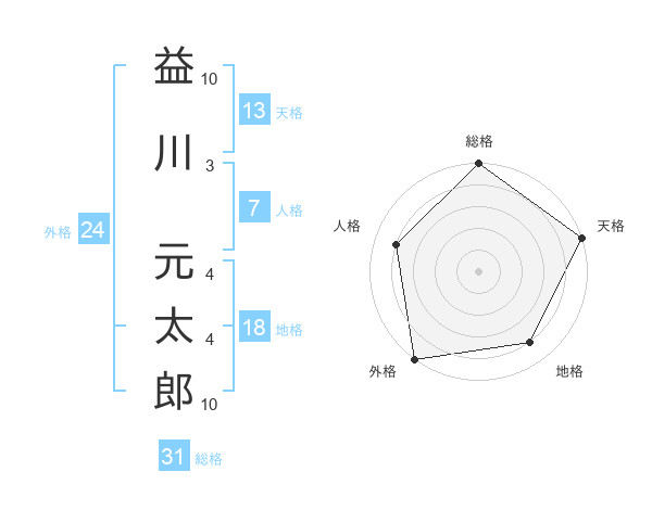 益川 元太郎さんを姓名の画数から五運を鑑定