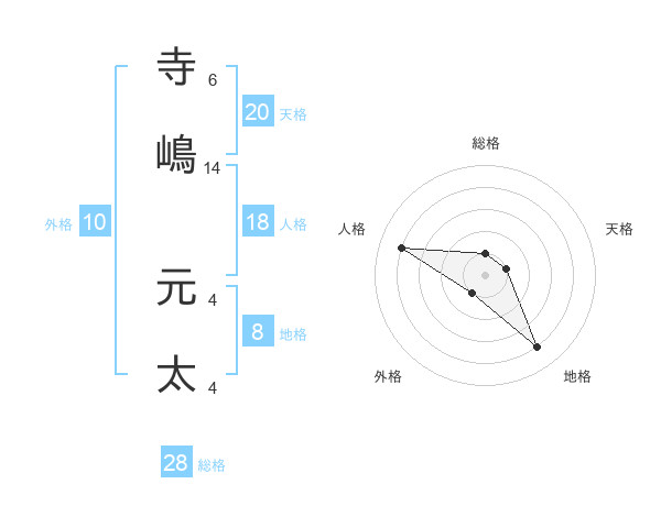 寺嶋 元太さんの総格は28画の1点!