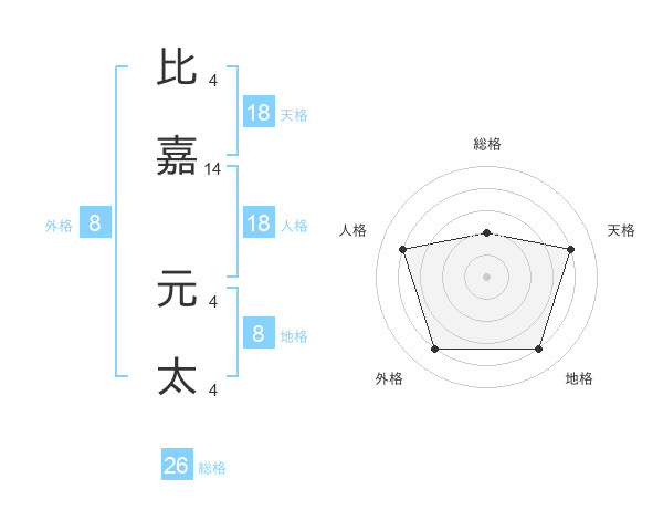比嘉 元太さんを姓名の画数から五運を鑑定