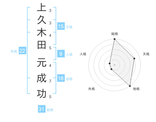 上久木田 元成功さんを姓名の画数から五運を鑑定