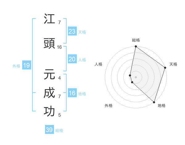 江頭 元成功さんを姓名の画数から五運を鑑定