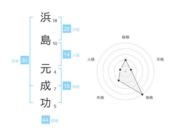 浜島 元成功さんを姓名の画数から五運を鑑定
