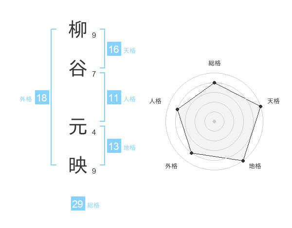 柳谷 元映さんを姓名の画数から五運を鑑定