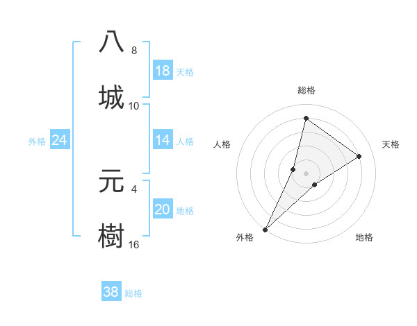 八城 元樹さんの総格は38画の4点!