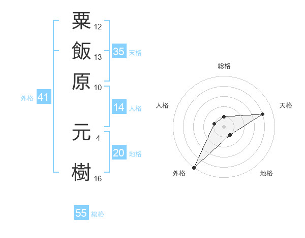 粟飯原 元樹さんの総格は55画の1点!