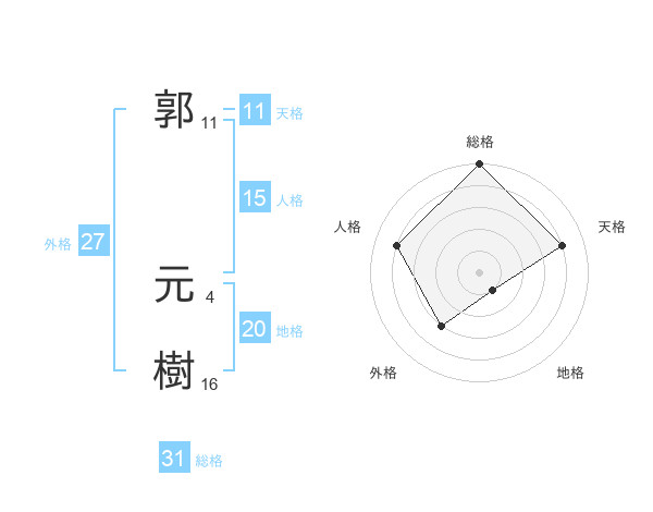 郭 元樹さんの総格は31画の5点!
