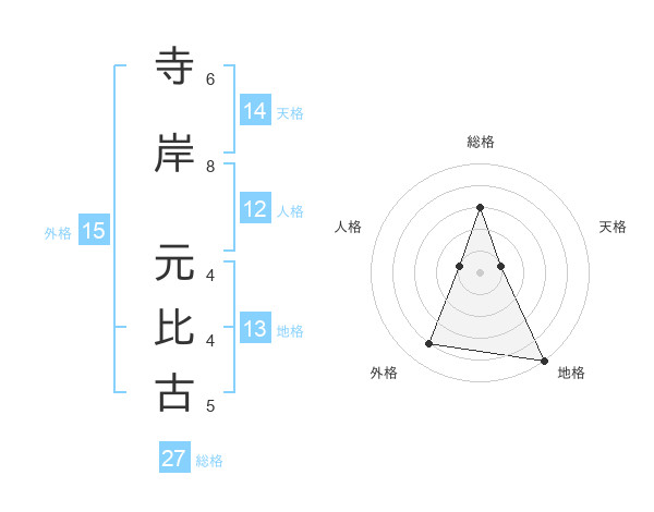 寺岸 元比古さんの外格は15画の4点!