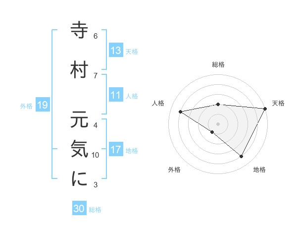 寺村 元気にさんを姓名の画数から五運を鑑定