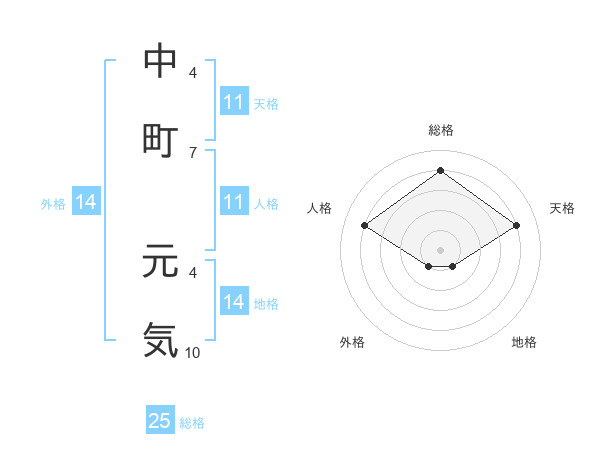 中町 元気さんの総格は25画の4点!