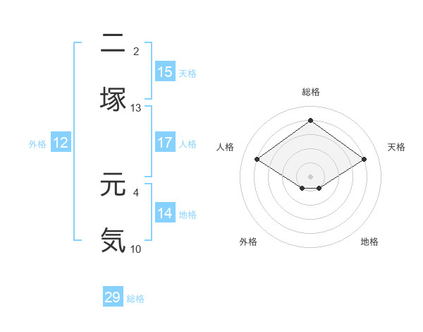 二塚 元気さんの天格は15画の4点!