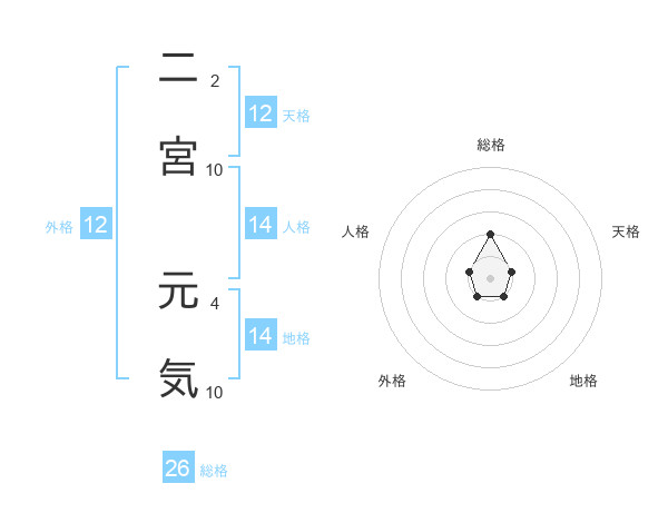 二宮 元気さんの総格は26画の2点!