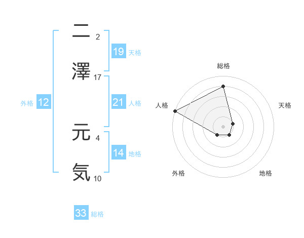 二澤 元気さんを姓名の画数から五運を鑑定