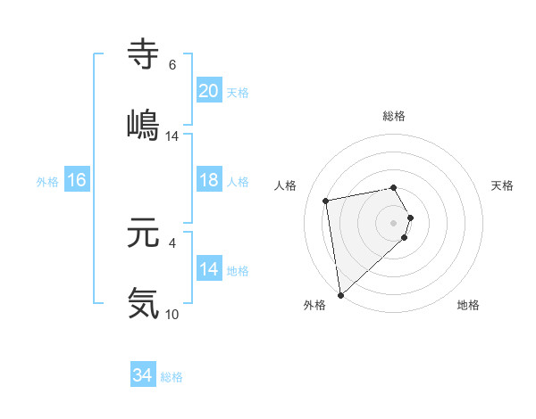 寺嶋 元気さんの総格は34画の2点!